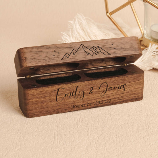Make your big day more remarkable and a great memory with this specifically personalized black walnut wood ring box. It goes with any rustic wedding perfectly too.