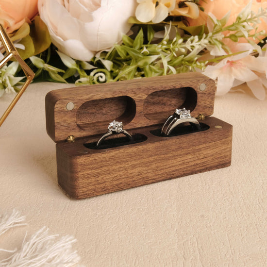 Our material——Walnut, was born natural amidst refreshing environment, gifted from the works of God. Every wooden ring box presents varied grain as time had already curved different traces within.