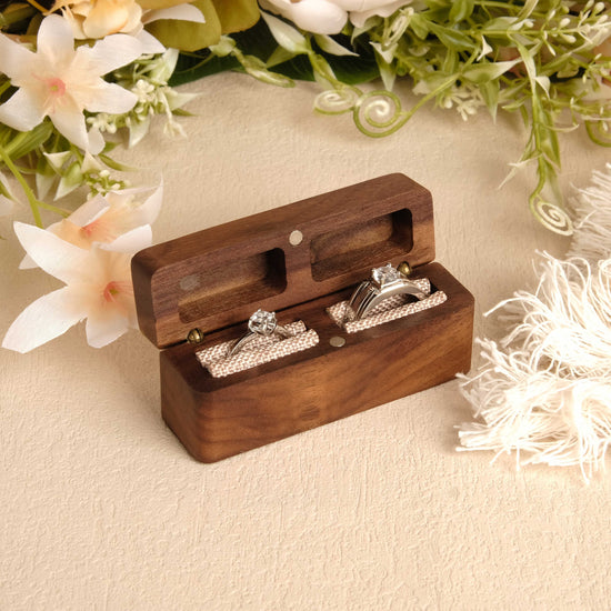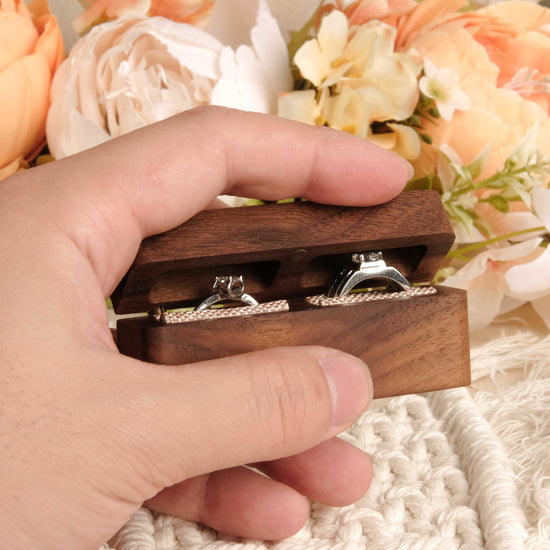 Our material——Walnut, was born natural amidst refreshing environment, gifted from the works of God. Every wooden ring box presents varied grain as time had already curved different traces within.
