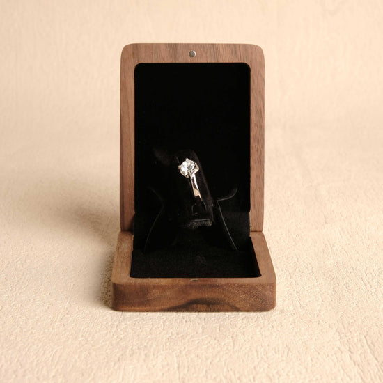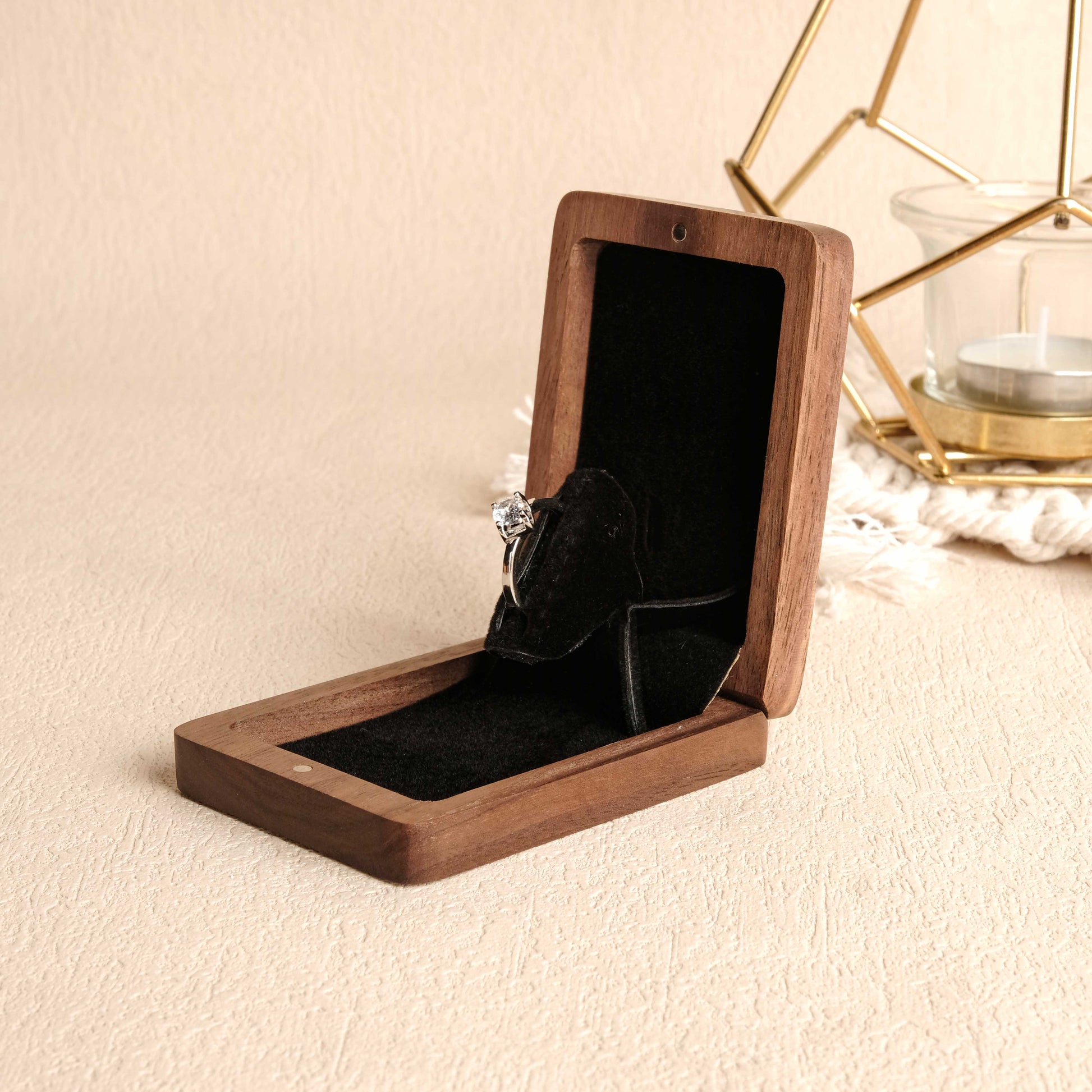 Our material——Walnut, was born natural amidst refreshing environment, gifted from the works of God. Every wooden ring box presents varied grain as time had already curved different traces within.