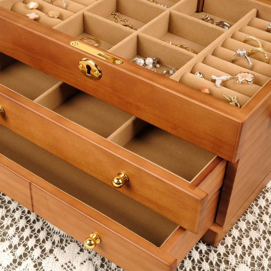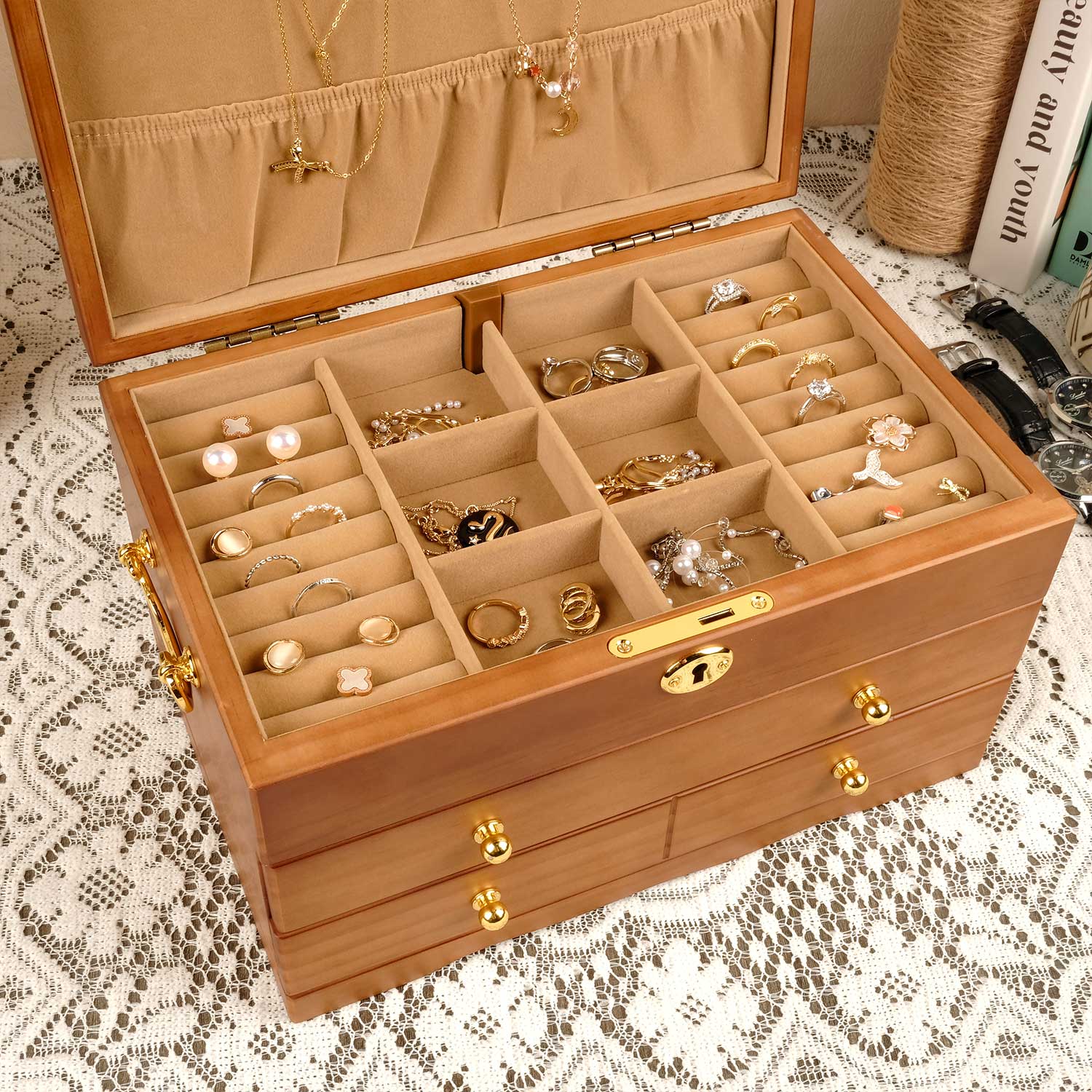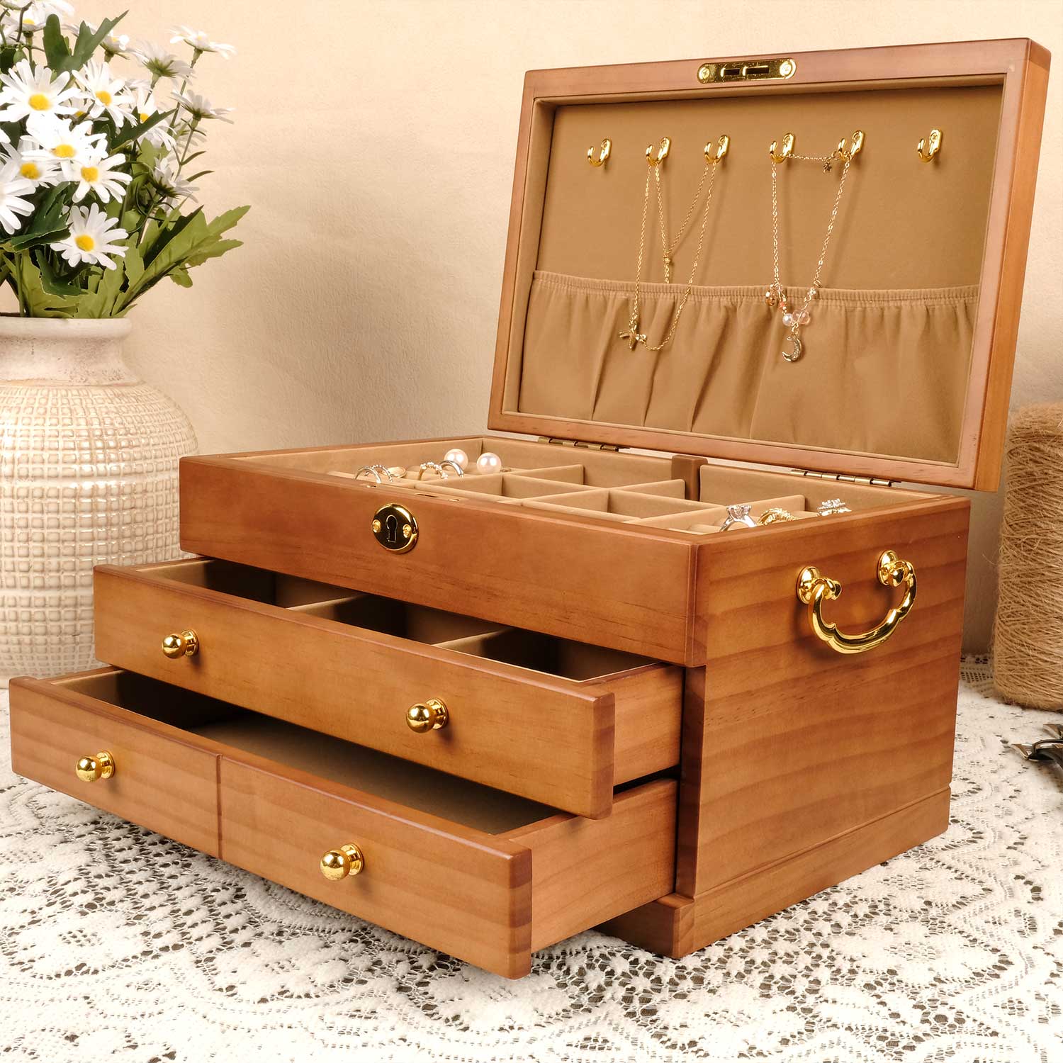 The Engraved - Three Tier Wooden Jewelry Box with Lock and Drawers