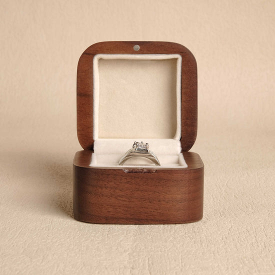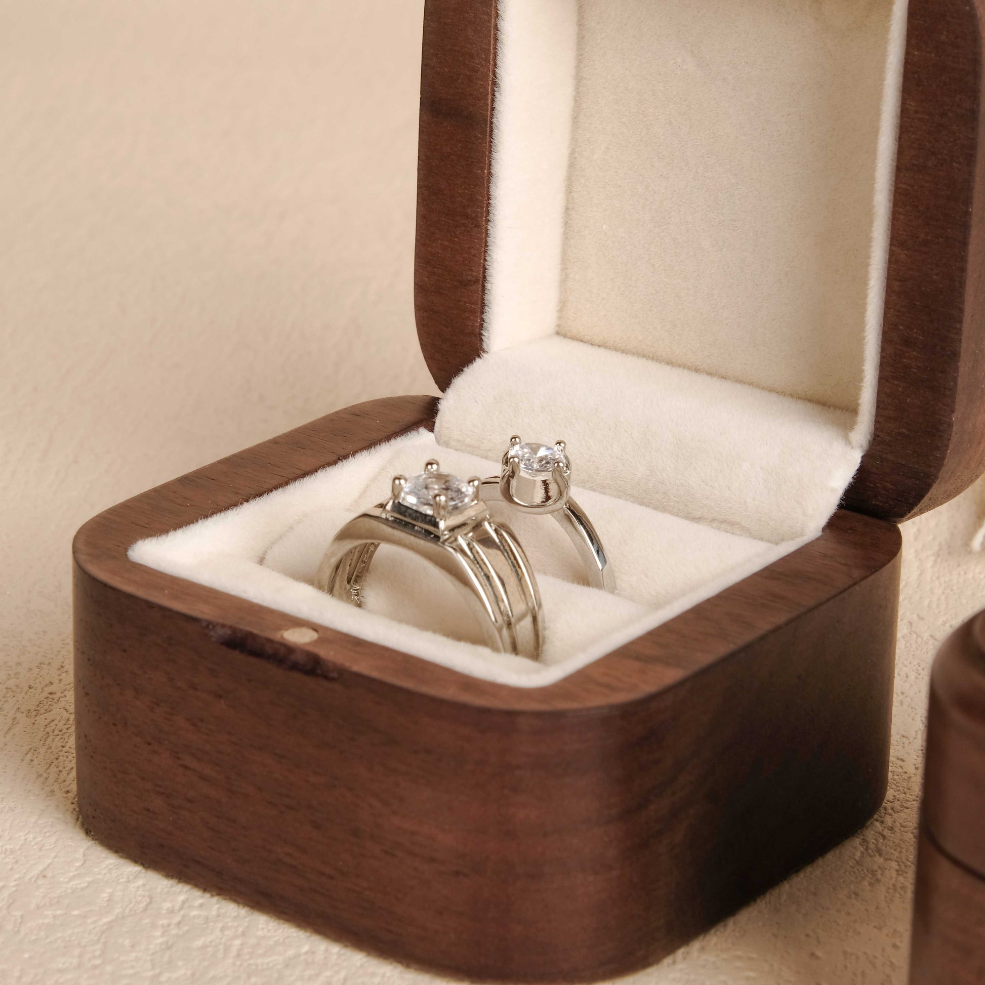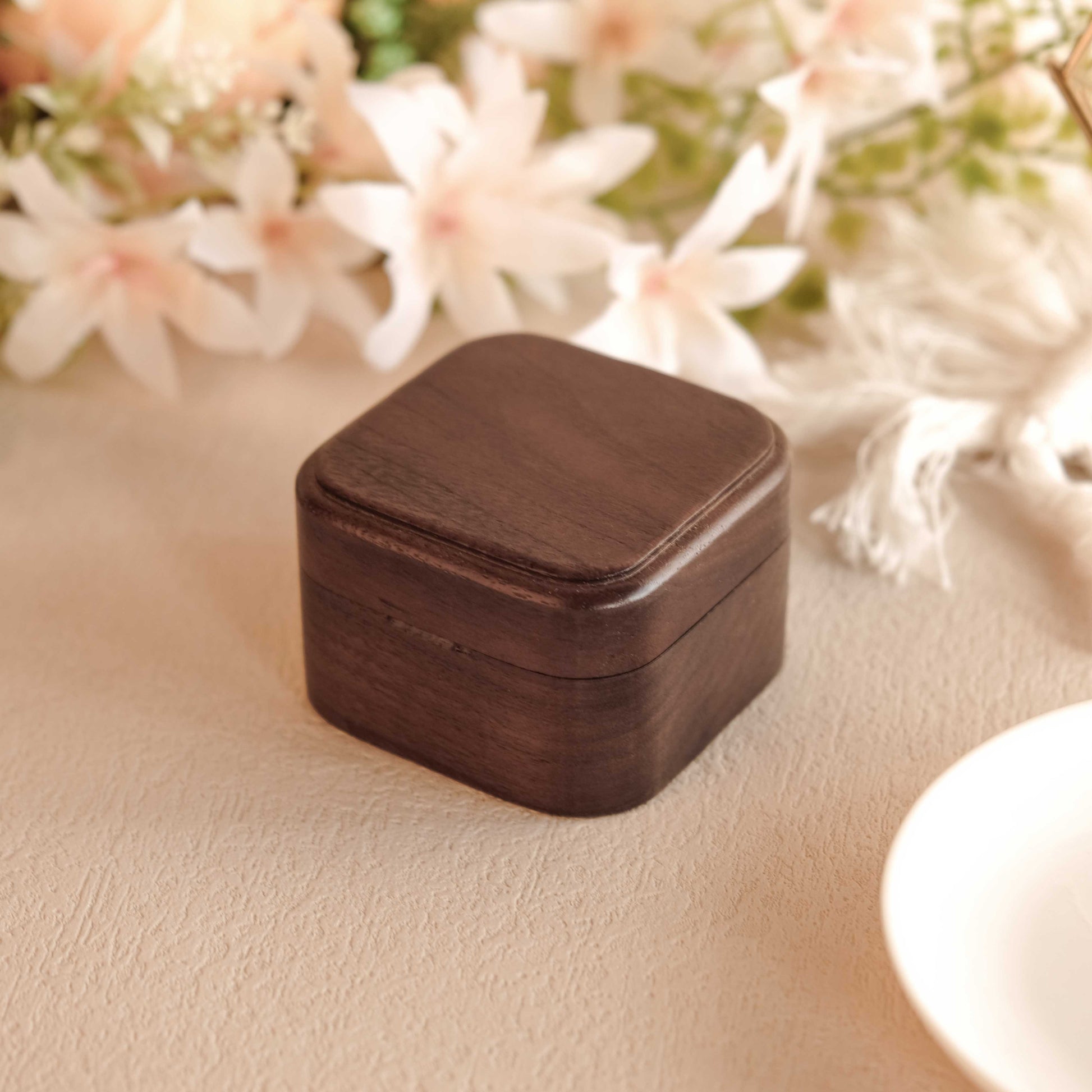 Our material——Walnut, was born natural amidst refreshing environment, gifted from the works of God. Every wooden ring box presents varied grain as time had already curved different traces within.