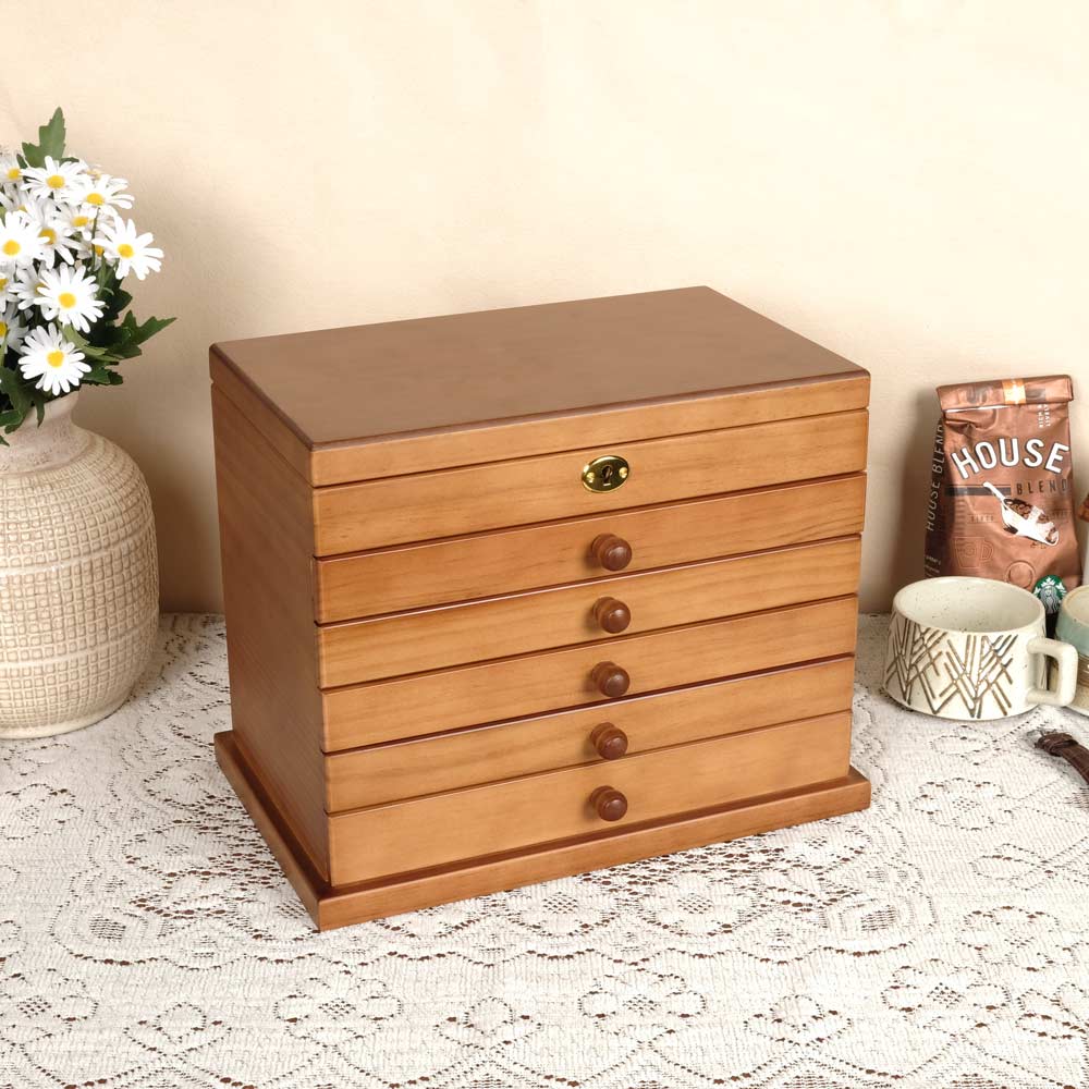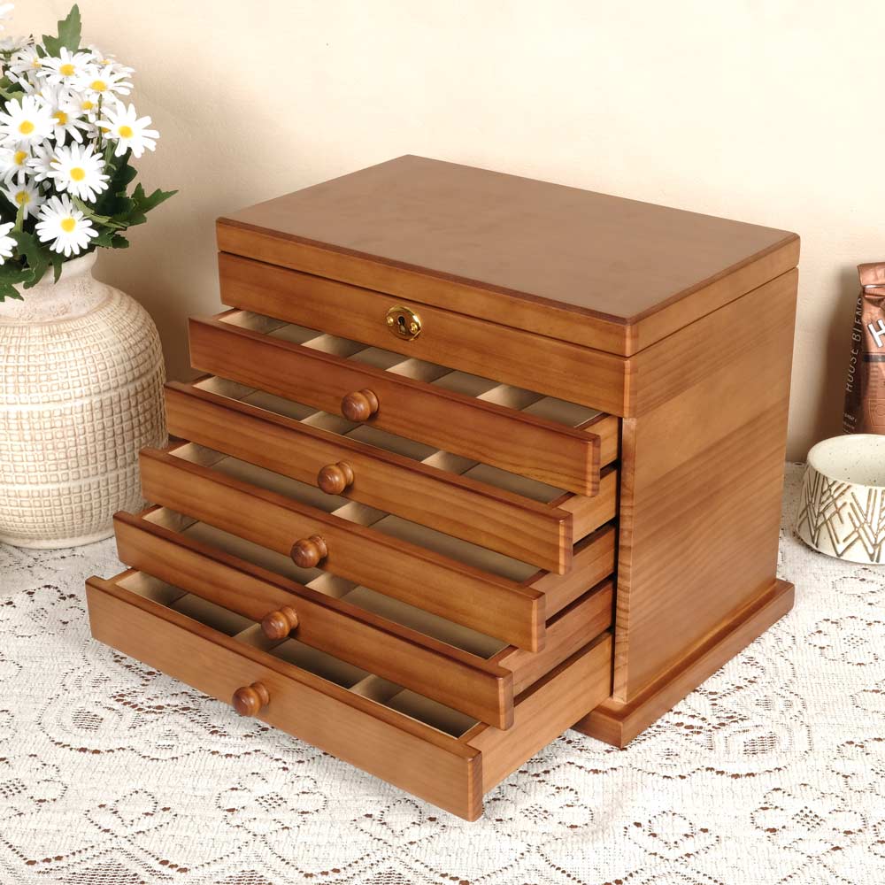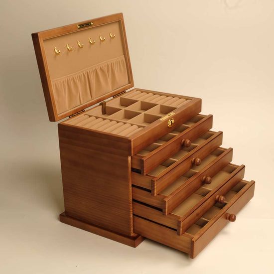 The Vintage - Multiple Tier Wooden Jewelry Box with Lock