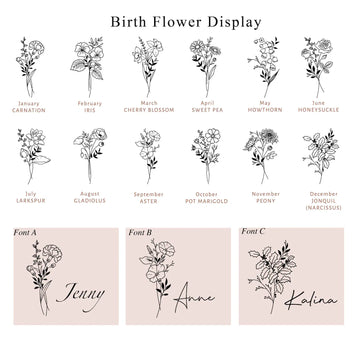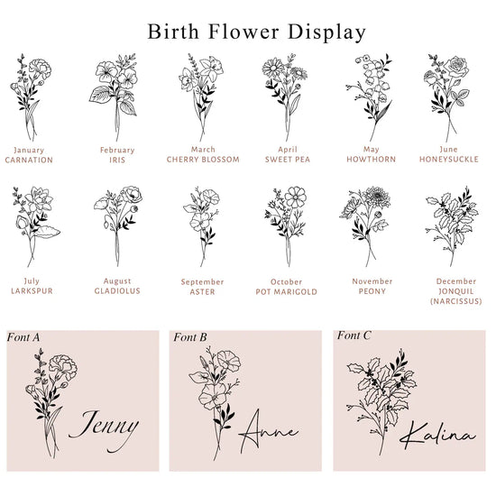 We offer 12 months of flowers and different design styles, you can personalize your jewelry box by adding initials, name, monogram, date or custom message.